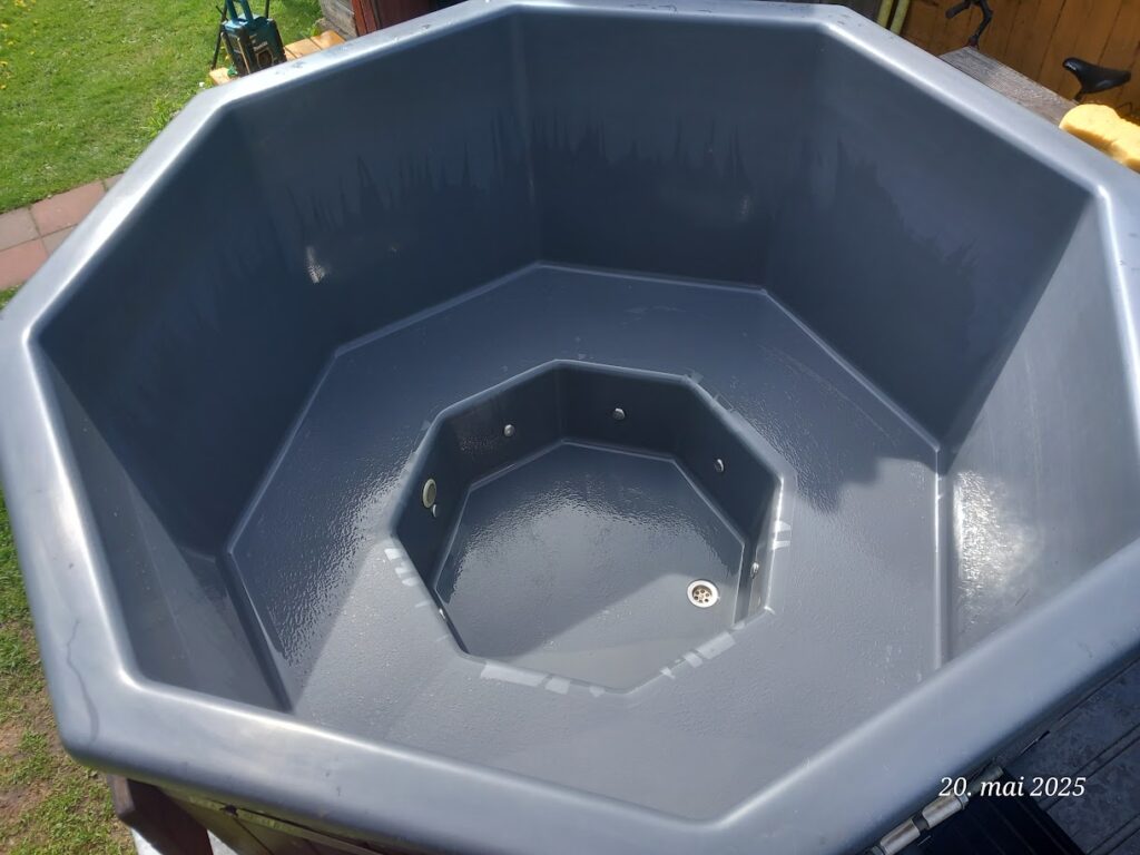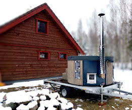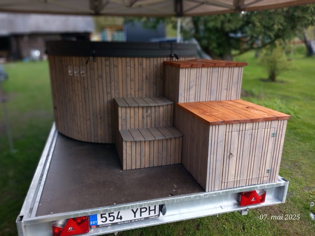 Saunas on kaasas 40liitrit köetav kuumaveepaak ja 60l külma vee kanister.